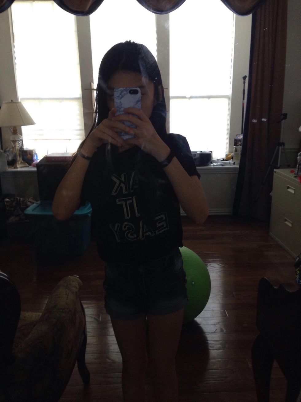 Finished projectChose cute graphic teePit cute pair of jean shortsBlow dry hair to give it volumeFind a cute pair army boots that matches graphic tee
