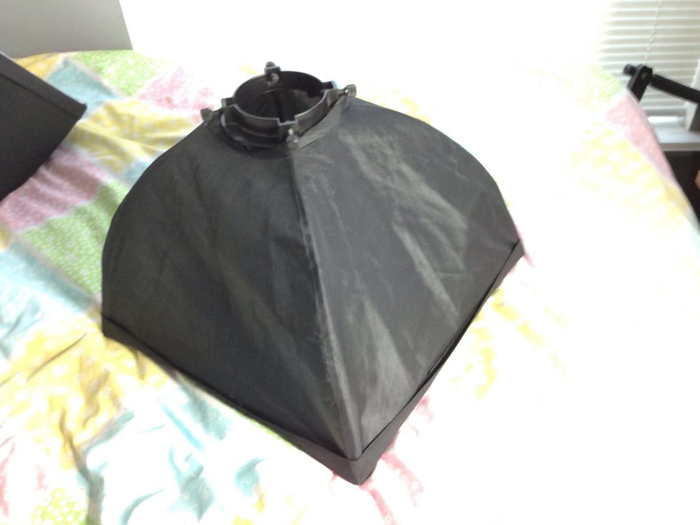 Install the outer diffuser, there is Velcro on the edges of the softbox to secure it in place.