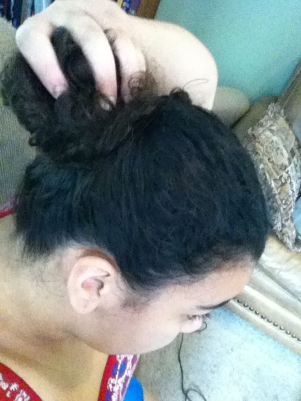 This works best if you have longish, thick hair to work with. Get it down and pretty untangled.
