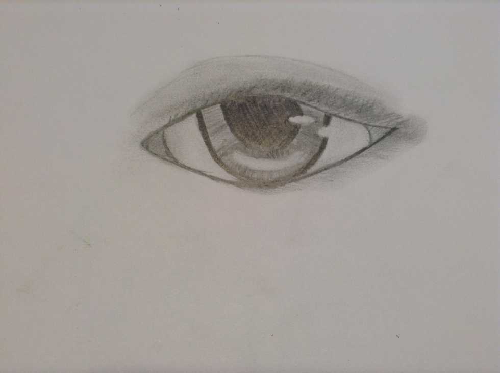 A common mistake that people make when drawing an eye is drawing a circle in the eye for the iris. Instead, you should draw a "U" shape in the eye like this.