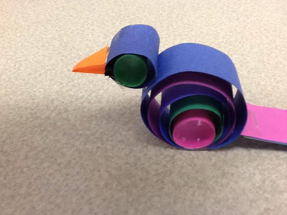 Attach the beak to the head with little tape pockets