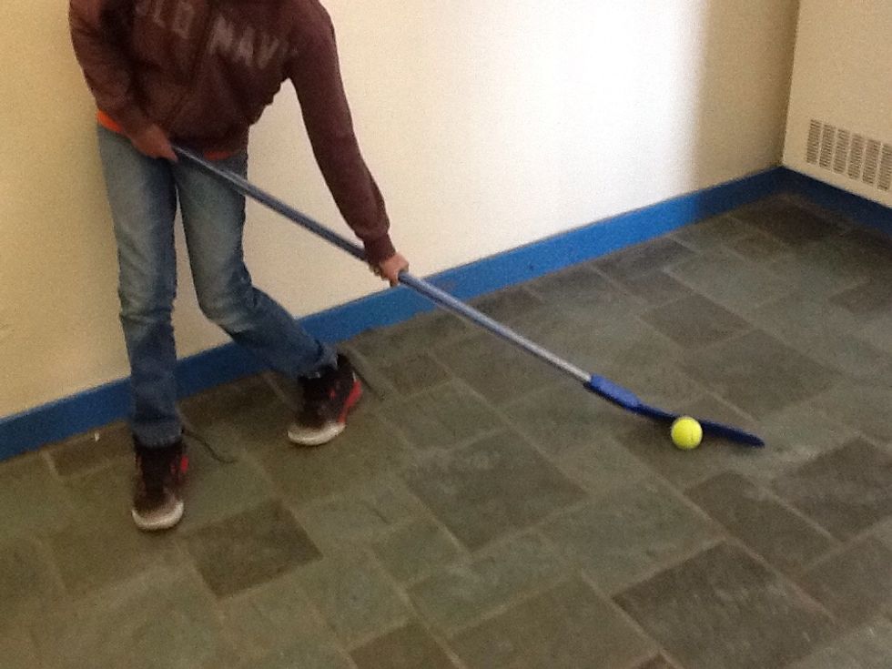 Step one: You need to get a ball hockey stick, and a ball