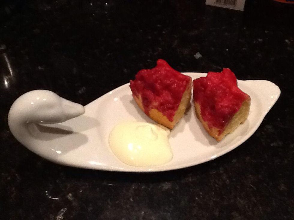 After placing raspberries on the bottom add dough then put in oven for 30 - 40 mins
