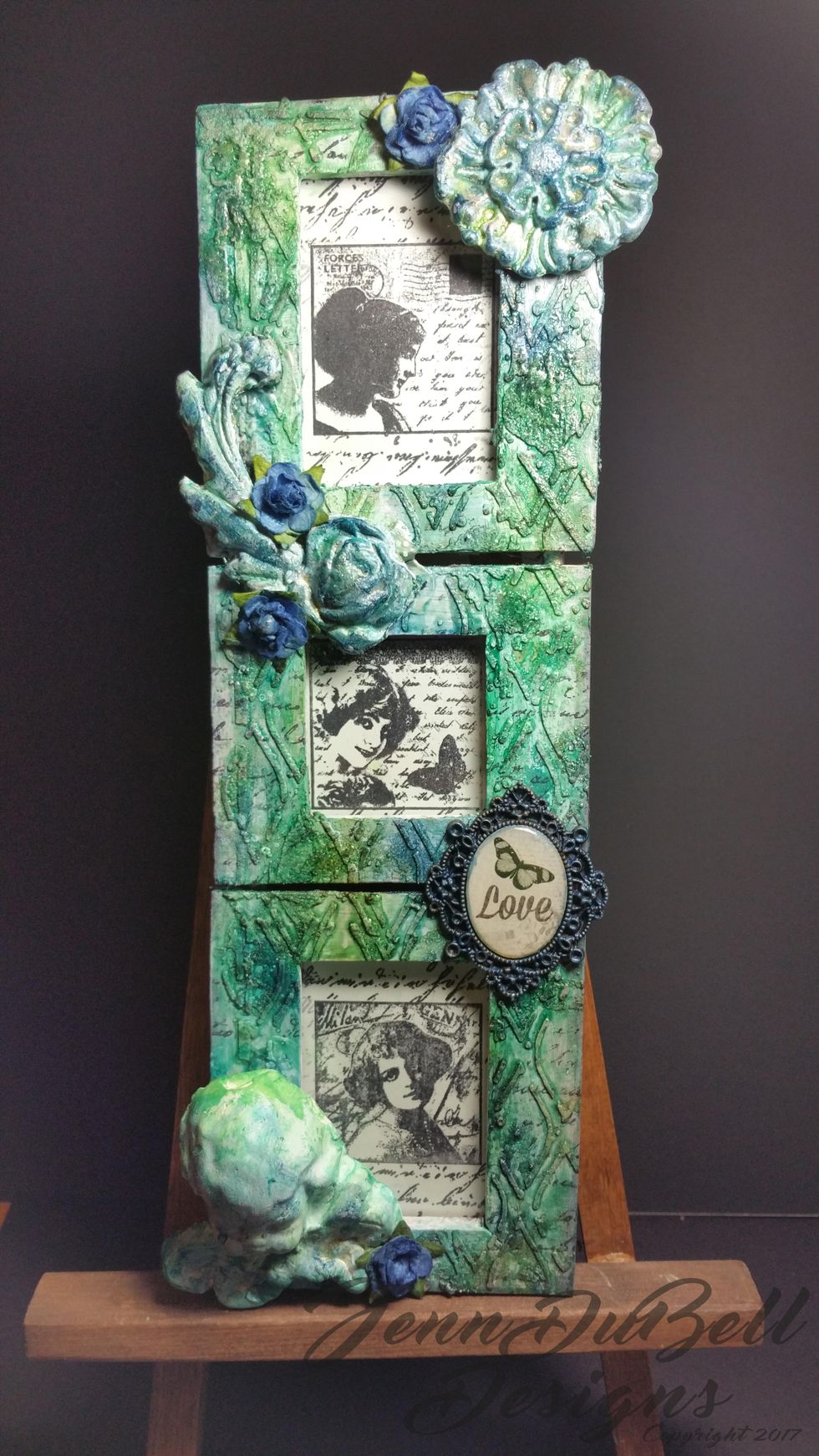 I added a cameo embellishment that I painted the metal edge with Gemstone Blue Topaz.