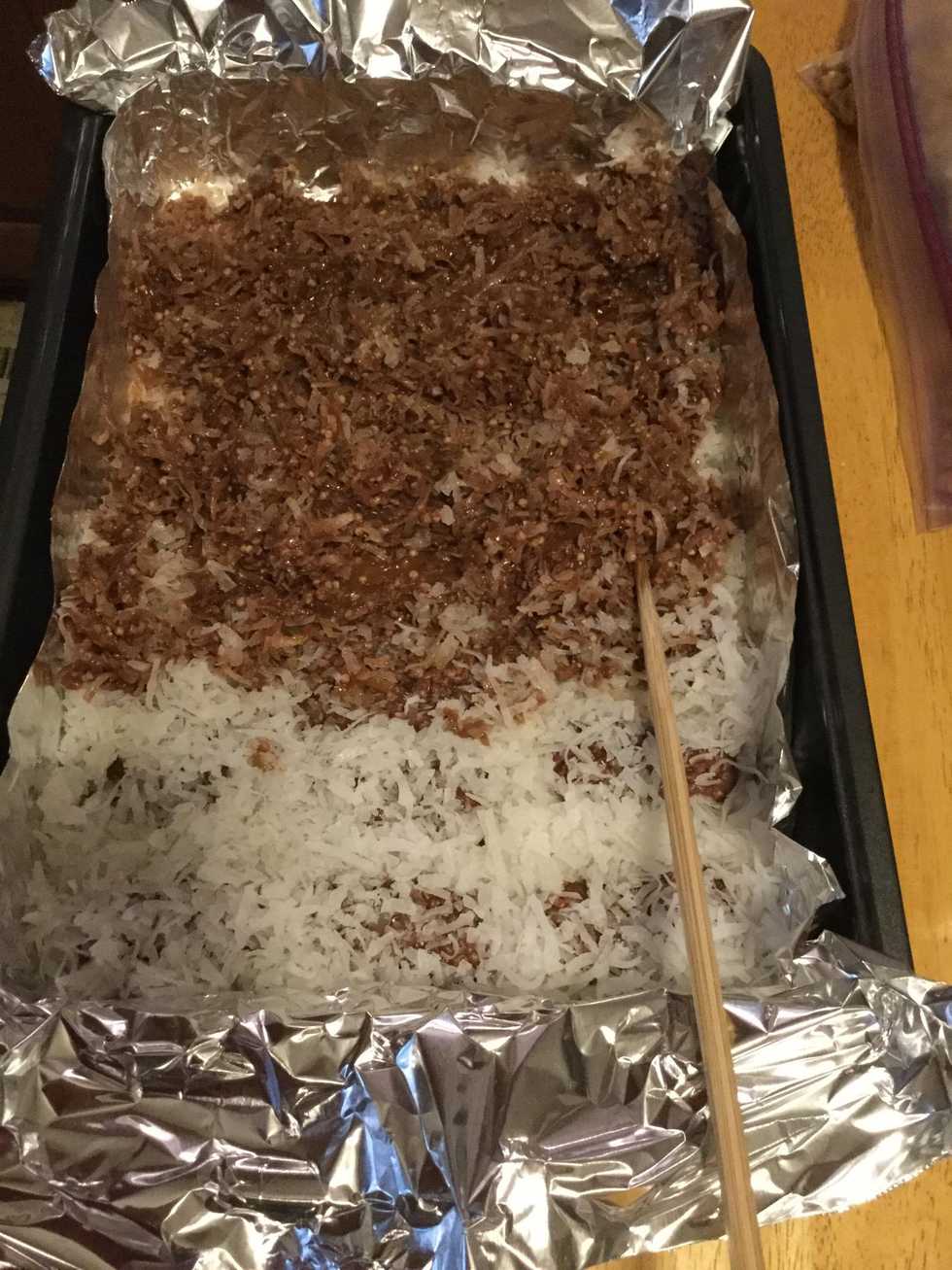 Sprinkle coconut evenly over the bars. Bake for 10 minutes or until melted.