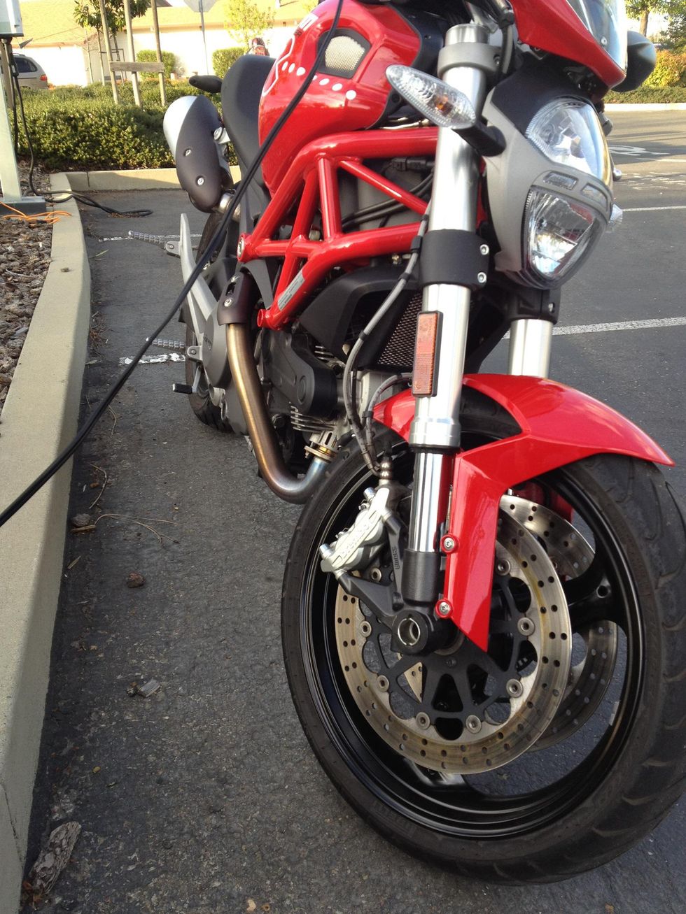 Connect the battery tender (charger) to your bike’s battery lead (hopefully preinstalled).Plug in the charger and make sure its indicator shows it is working.Adjust the cord to be free of obstructions. Wait for a few hours (perhaps overnight).
