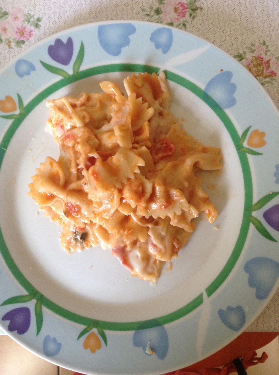 I used tomato pasta. That's no problem in the sauce, you can use every type of pasta you have already cooked.