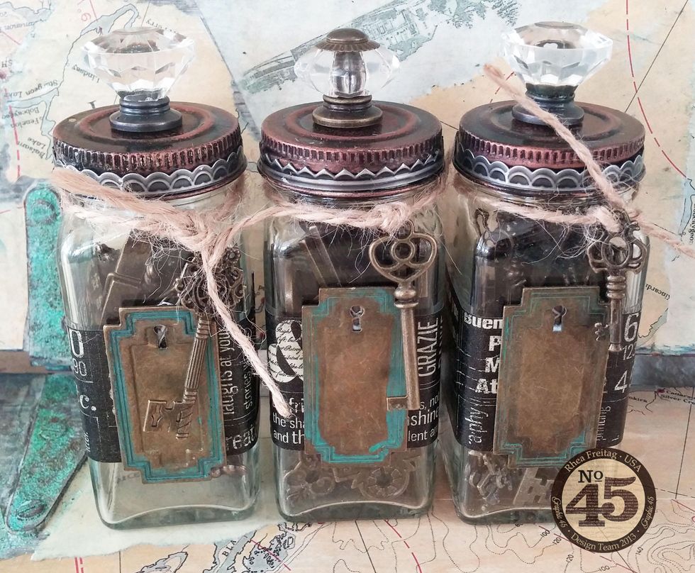 Step 6: Find some embellishments with similar finishes to display proudly in your new alterd jars.