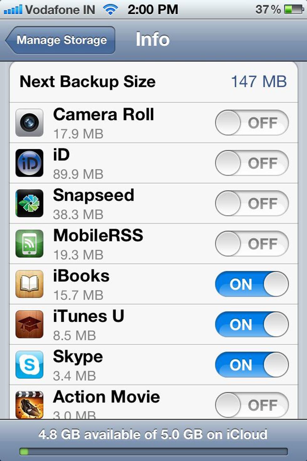 Turn off backup for all applications that you think are unnecessarily taking up storage space. That's it.🏁