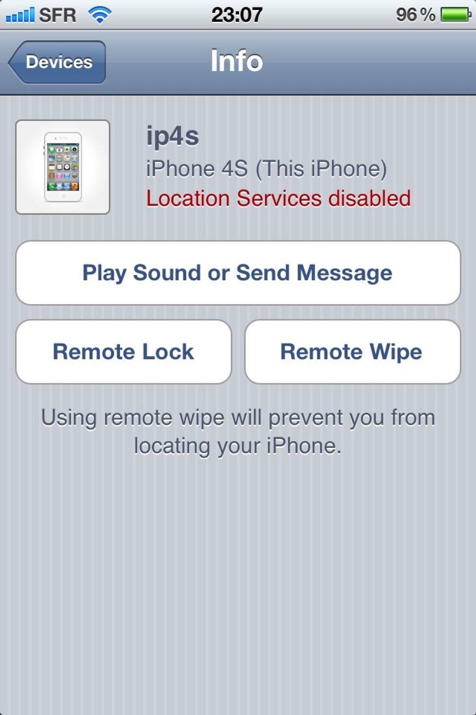 Here you will have a list of all your devices that have find my iphone enabled. Tap on the blue arrow next to the device you want to remote lock or wipe.
