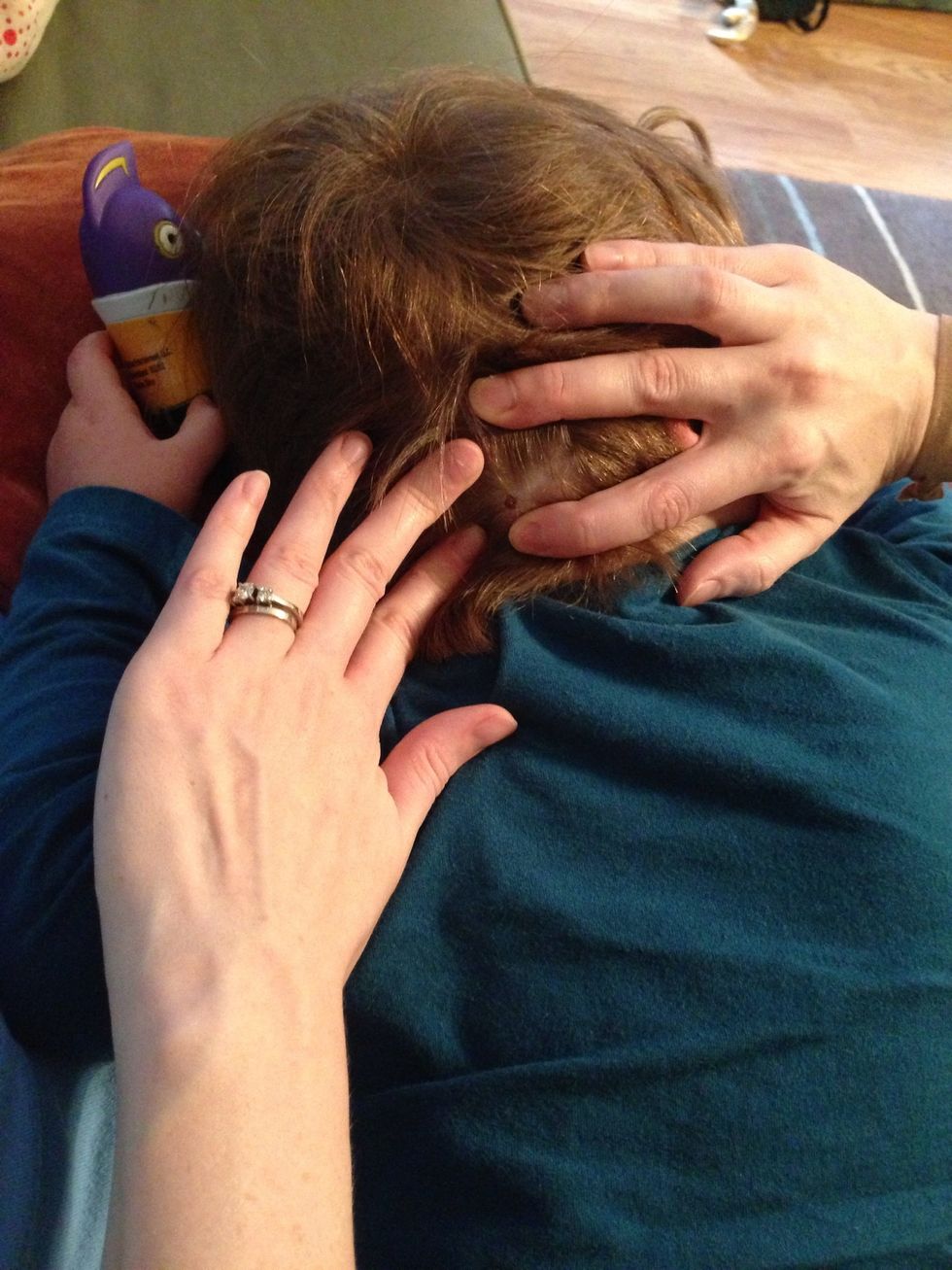 My little boy was playing outside and got a tick in his hair. This is what we did. {*disclaimer: I'm no doctor. If you feel uncomfortable with this, seek help from a medical professional.}