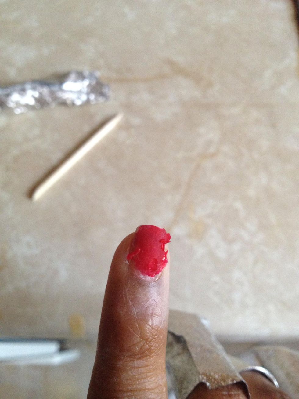 Use the manicure stick to remove the gel polish that should have bubbled or lifted