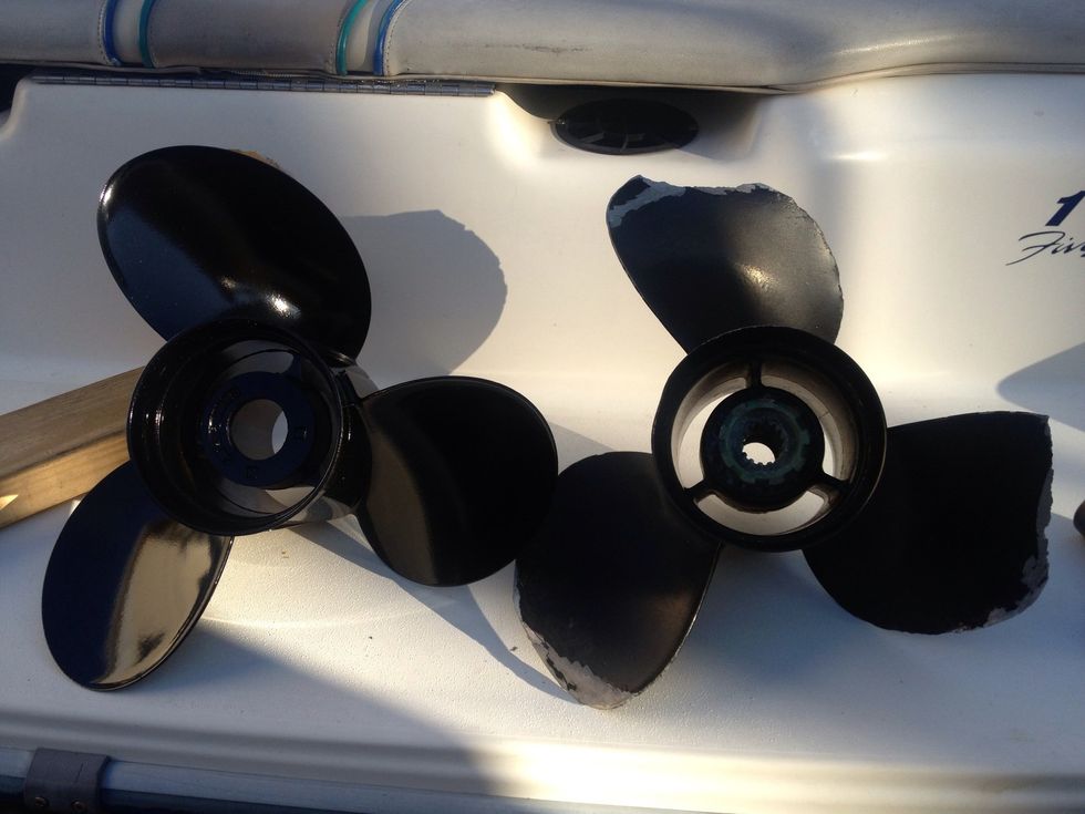 The dimensions for your prop will be stamped here. I have a 14.5 19 which means the diameter is 14.5 inches with a 19 degree pitch