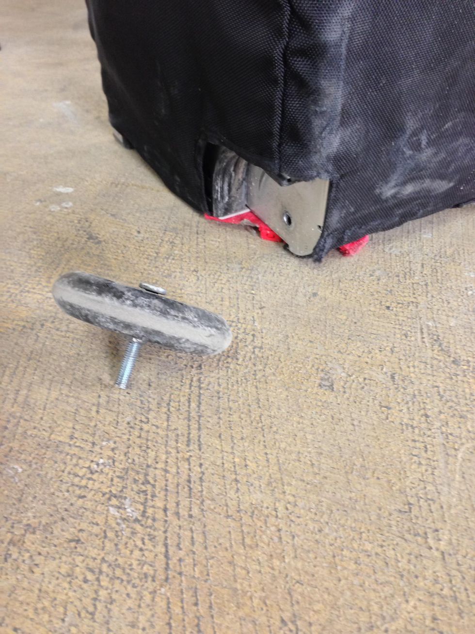 As you can see both axel bolts are bent compared to the new one in the centre. Since one axel came off and the other one was extremely loose on route to a gig, all the hardware was lost.