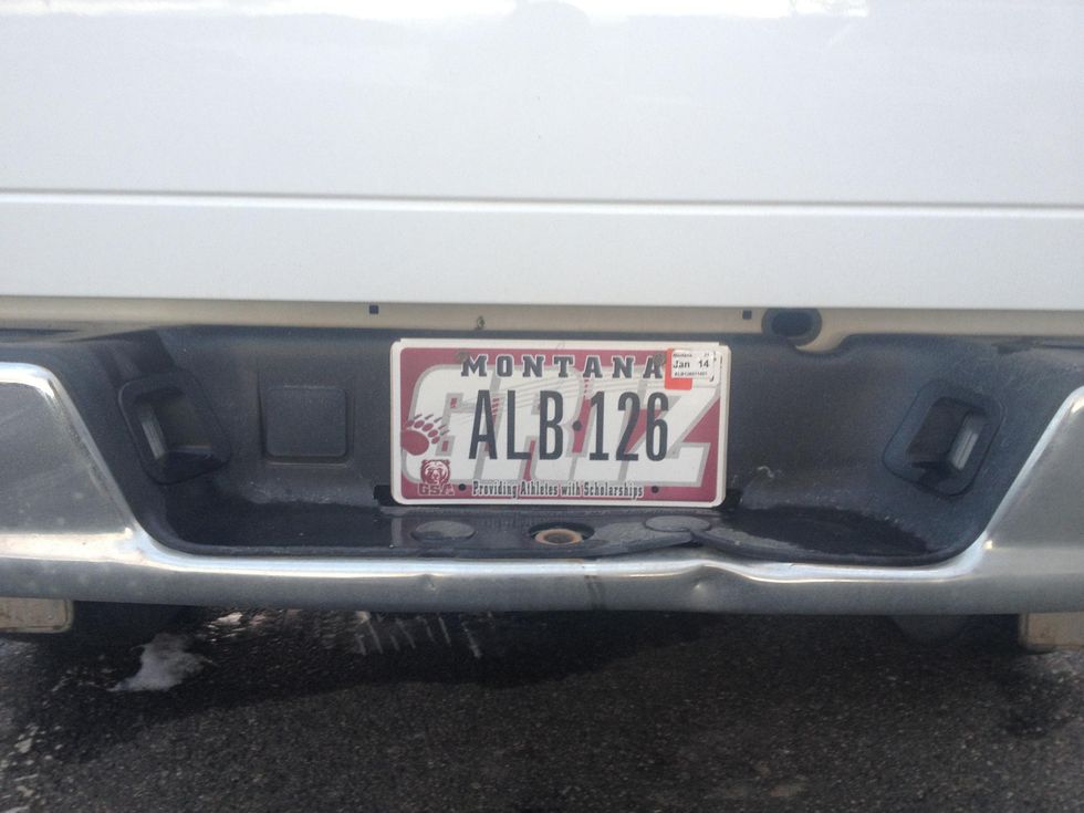 Locate the license plate on the back of the pickup and look to the left and right to find what bulb is burnt out and needs replaced.