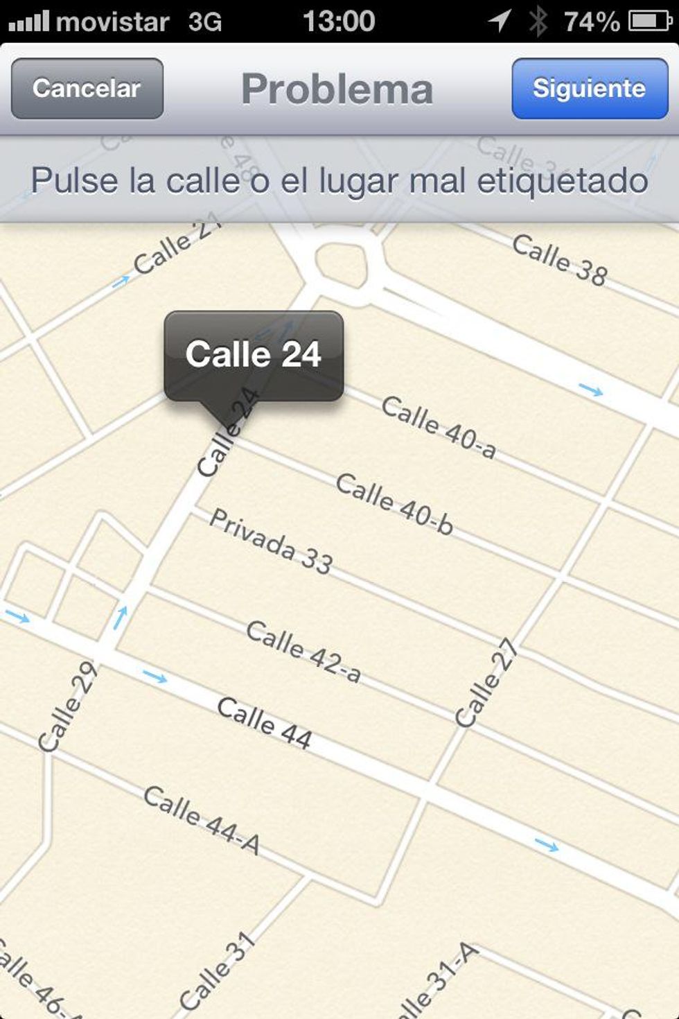Touch the mistaken street name. Español: Toca el nombre de calle que tiene el error.