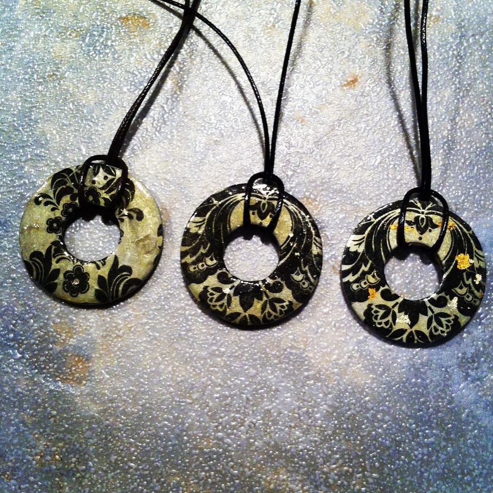 Easy enough to go crazy with this project! Here's another finished pendant plus a set of earrings. Why not!