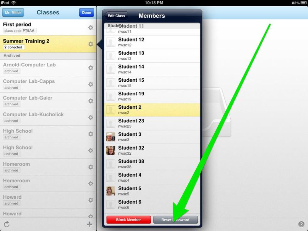 Be sure you on the Classes page in Showbie. Tap Edit.