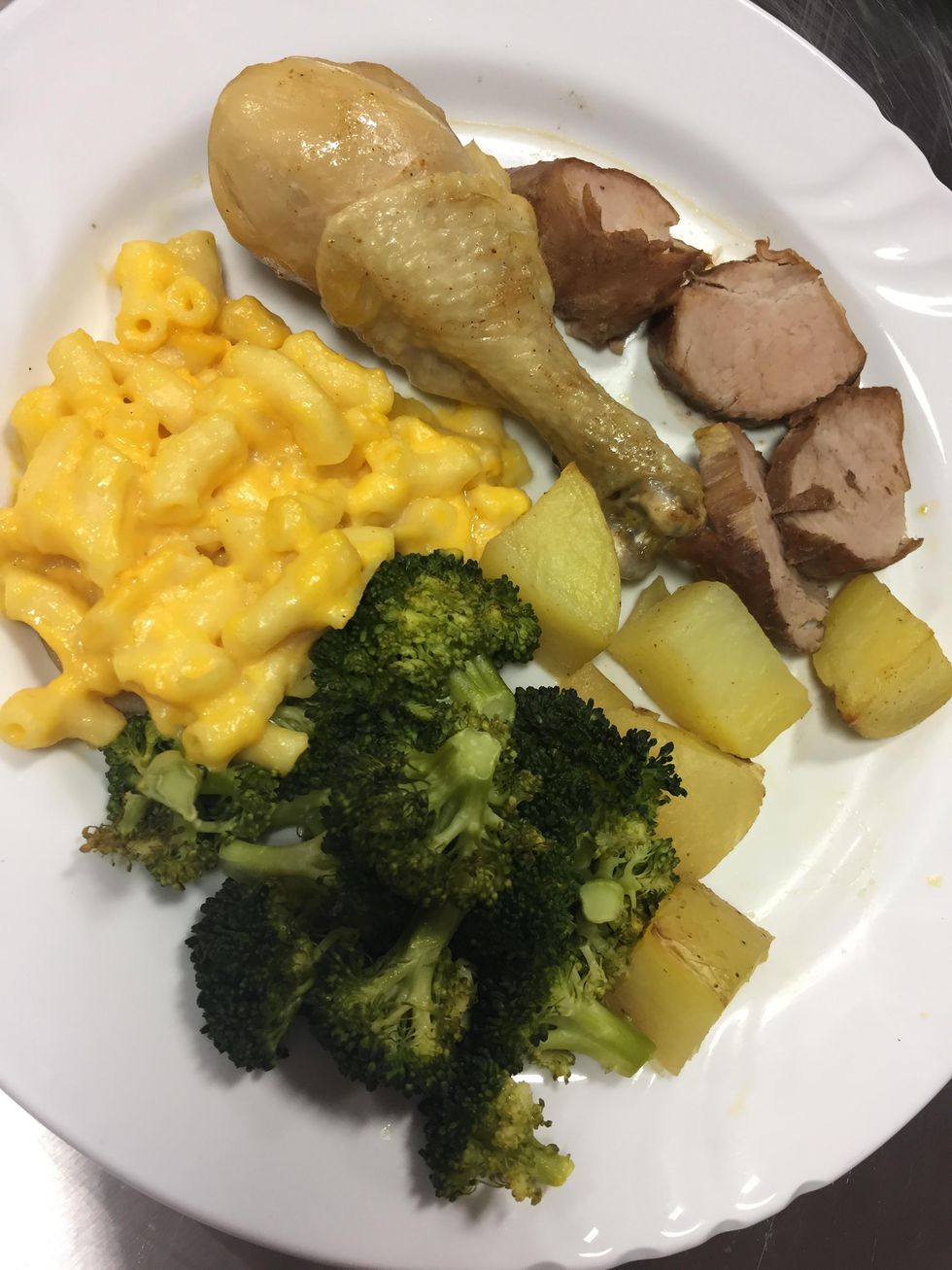 To rethermalize foods you will need to plate all of your cooked foods cold. Once plated, let the plates of food sit at room temperature for 5 - 10 min to temper the plates.