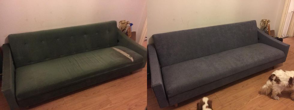 Not bad.. You can do it too! We are debating to add buttons to the top section like the original cover and chrome tacks to the arms. Or should we leave as is. What's your thoughts?