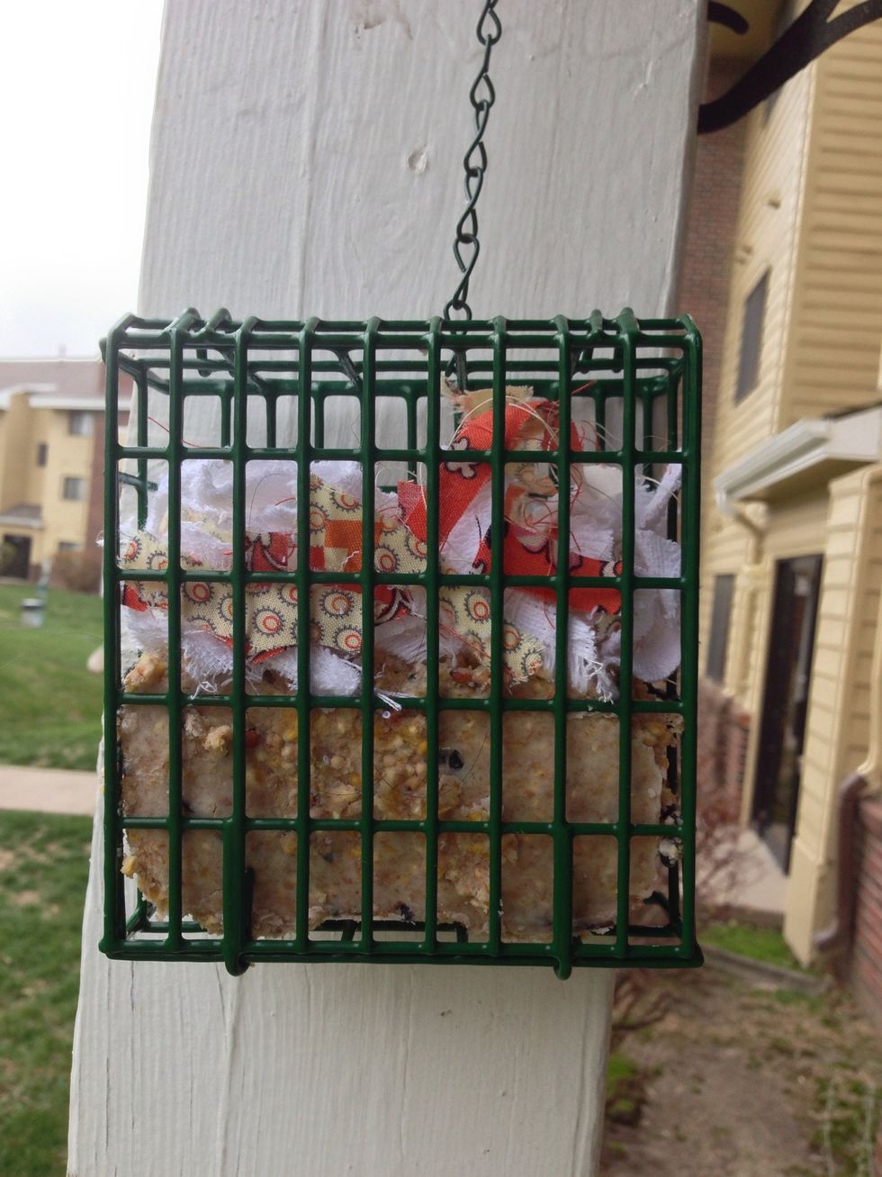 Tip: You can also add hair from your hair brush, feathers, or anything else you think the birds can use to make a nest.