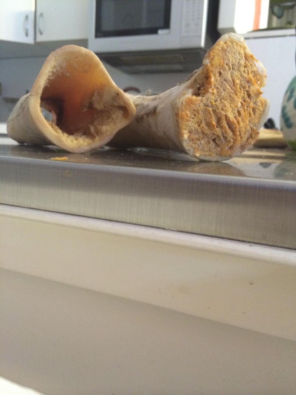 Also use a chopstick to wedge the mixture further down so the bone is completely full.