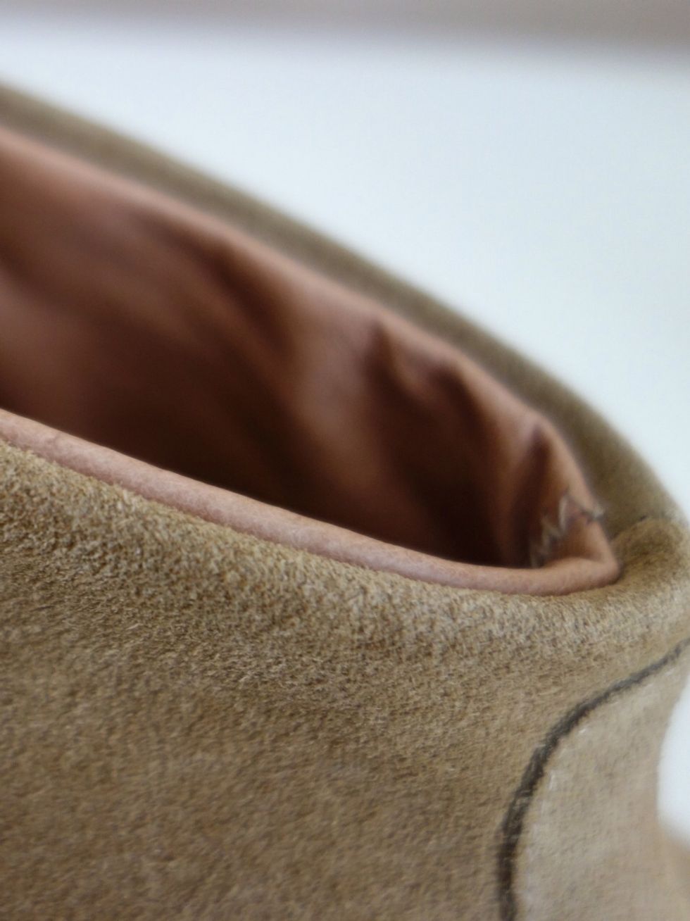 Fold the lining in so that it is slightly lower than the outside fabric. Add Mod Podge to seal the lining to the outer fabric.