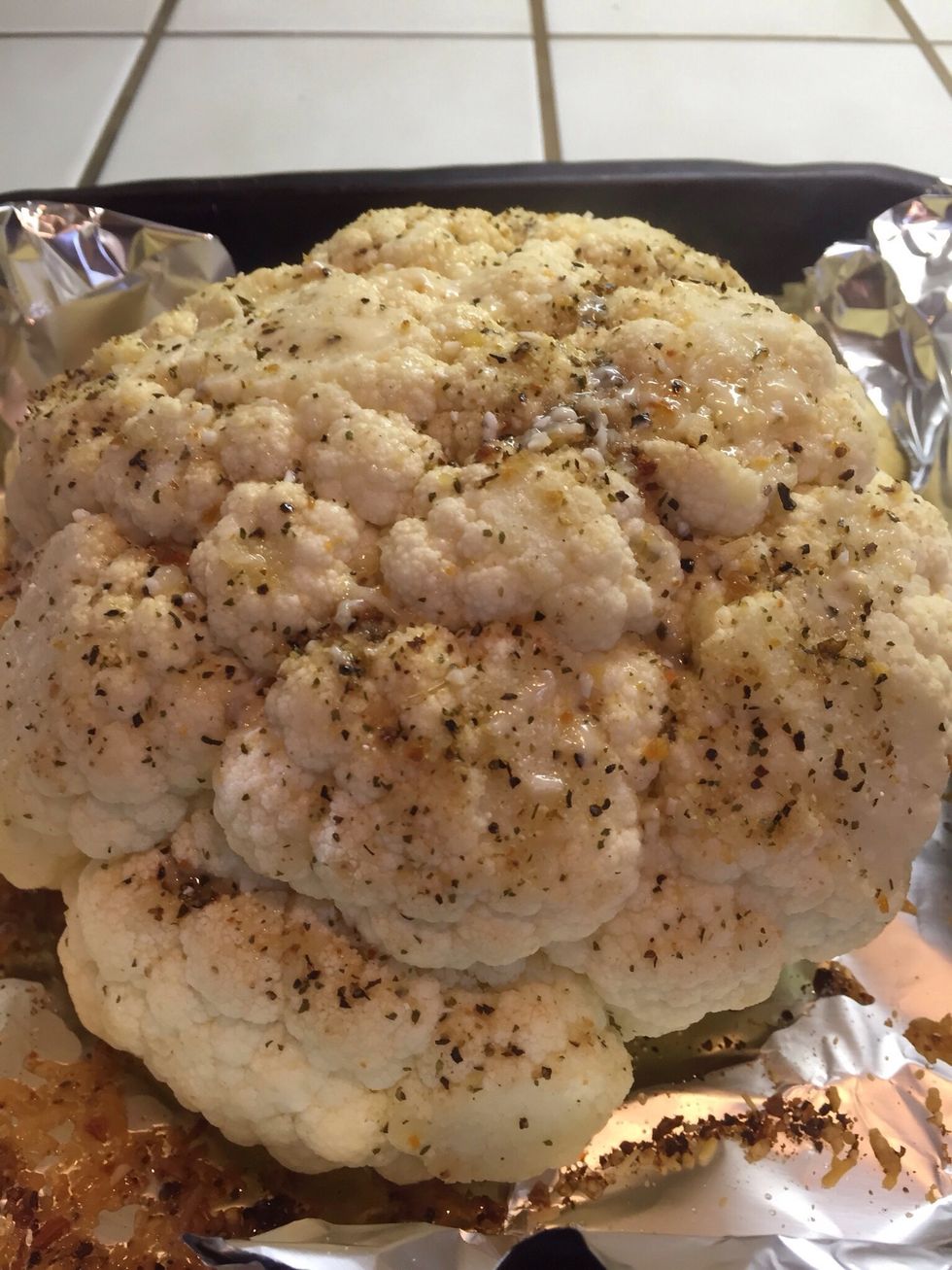 Cut off leaves and stem of cauliflower, make sure not too much, you want to keep head in tact.