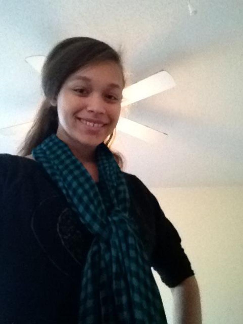 Pick your favorite scarf. I really like this green one because it's really long and thick, so I can do a lot with it.