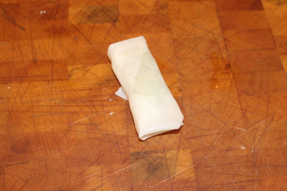 Take a finger and smear a little of the paste on the remaining corner and finish the roll!