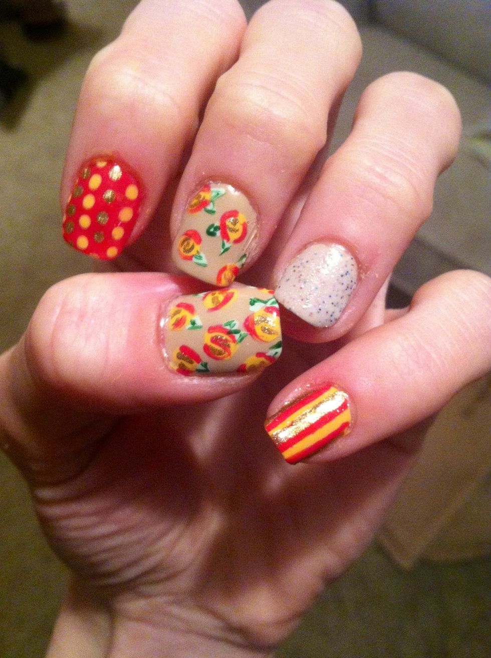 You can add in accent nails and create a skittlete as I've done here. I used all the colors mentioned earlier along with Sand Dolla Make Ya Holla by China Glaze on my ring finger.