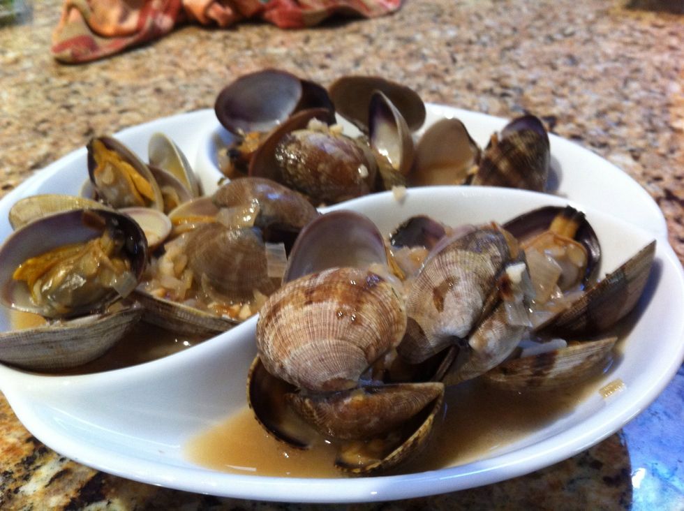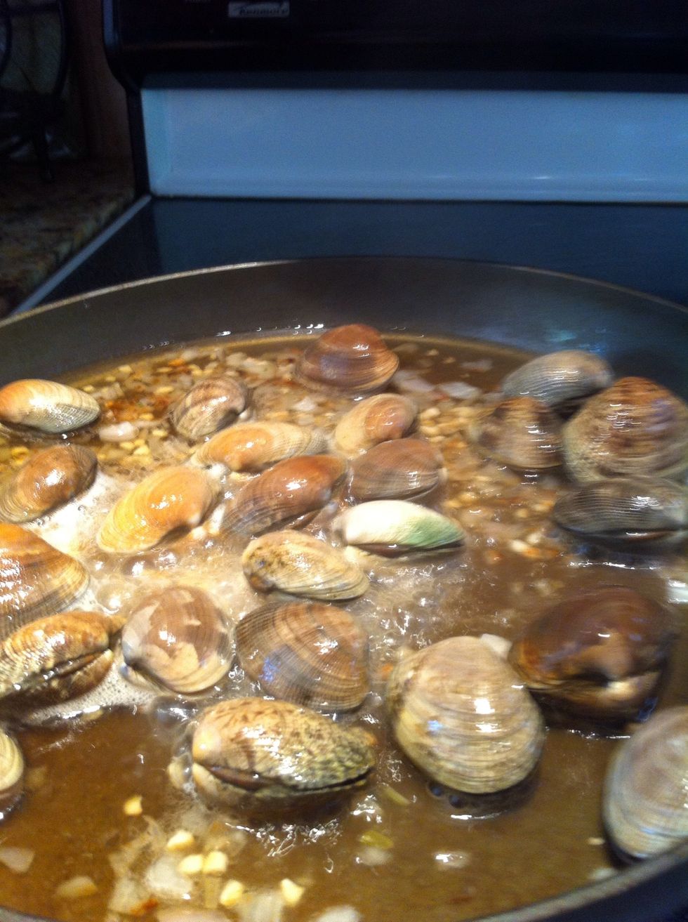 Cover the pan with a lid or foil. Cook for another 3 - 5 minutes until clams open up.