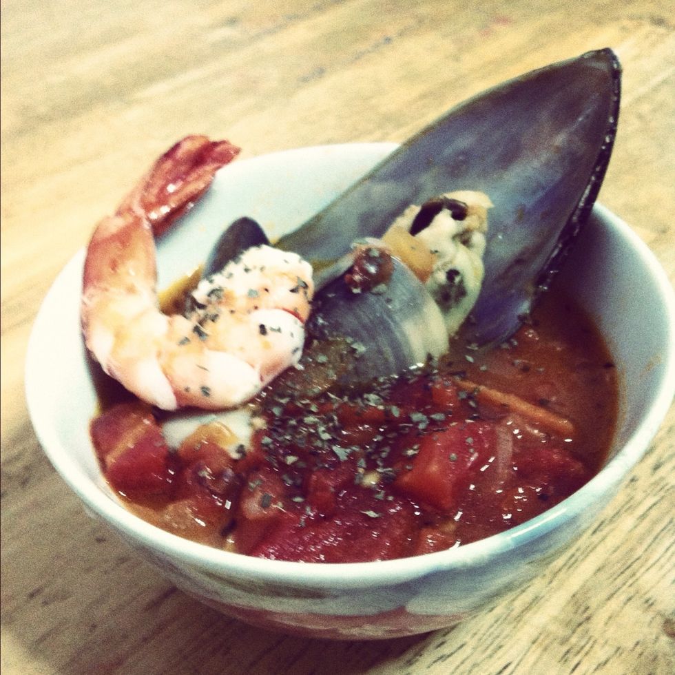 Prepare ingredients, wash and cut all seafood , chop up garlic and shallots, dice up fresh tomatoes