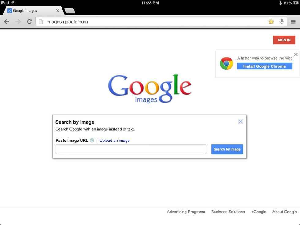 The first thing you'll notice is that it's not any different from the Safari version; the Search by Image button still isn't there. Luckily, fixing that is only two taps away.