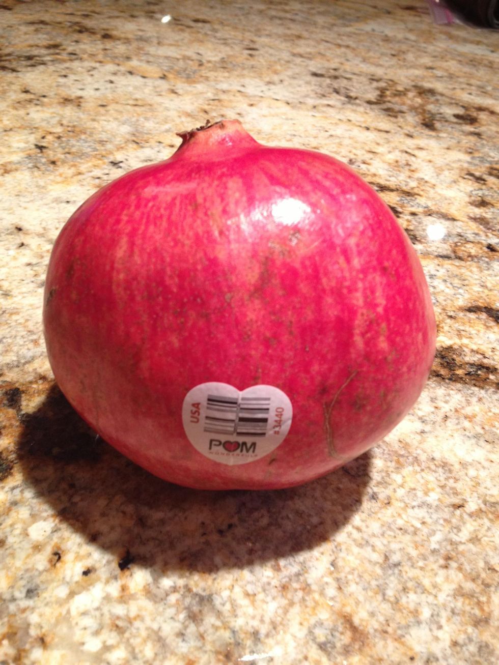 Here's the fun part! Take half of the pomegranate in your hand, turned upside down. Hold over the bowl and hit it with the back of your spoon. All the little seeds will fall out into the water.