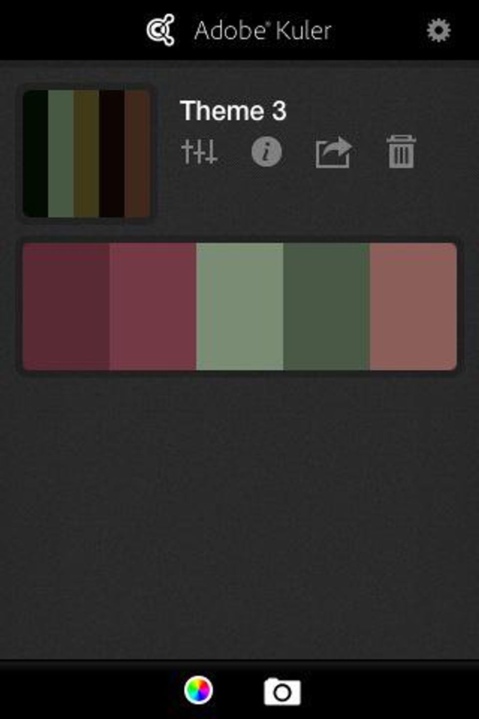 Download Adobe Kuler from AppstoreUse camera and it will detect colors automaticallySave themes and also edit themUse these color schmes in websites and other developments.