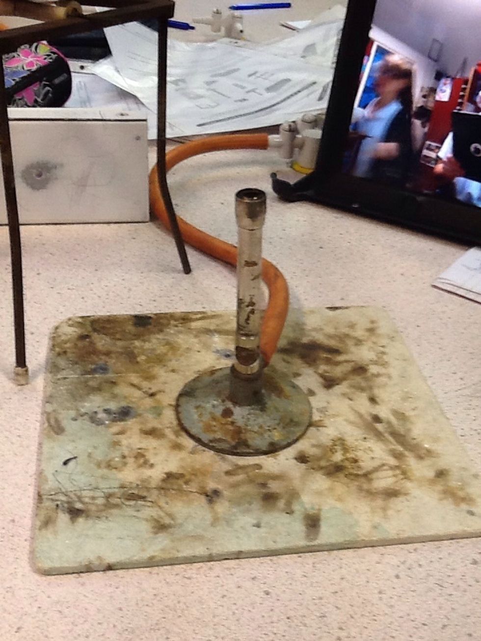 First you need a Bunsen burner, goggles, tripod, bowl, filter, heat proof mate, funnel, splint.