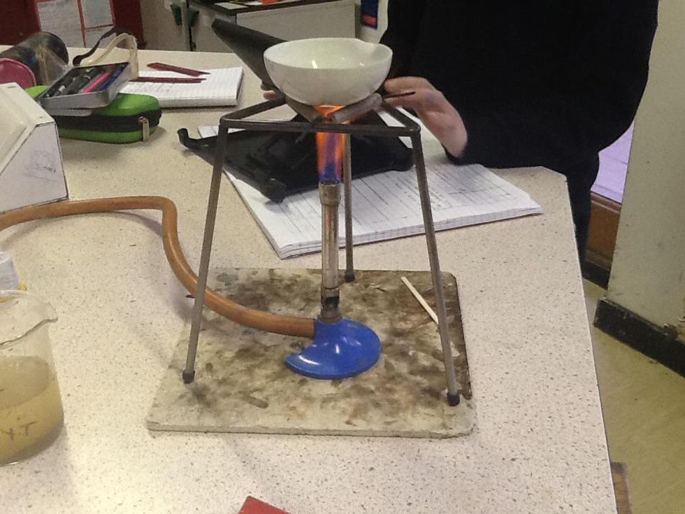 Put filter paper in the funnel and then funnel water through it. Let it run into the evaporating basin.