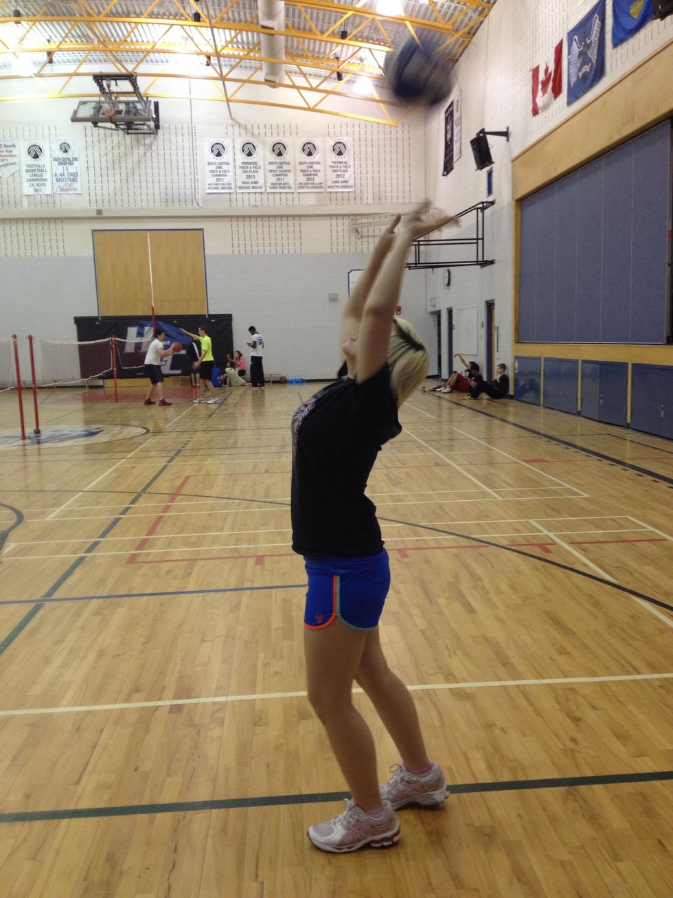 Step 3: have your wrists slightly back in order to propel the ball in the desired direction. The ball should be above your hairline.