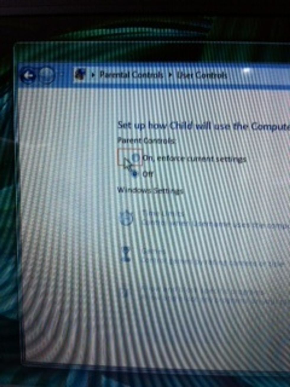 In the User Controls window, under Parental Controls, click the On, enforce current settings option.