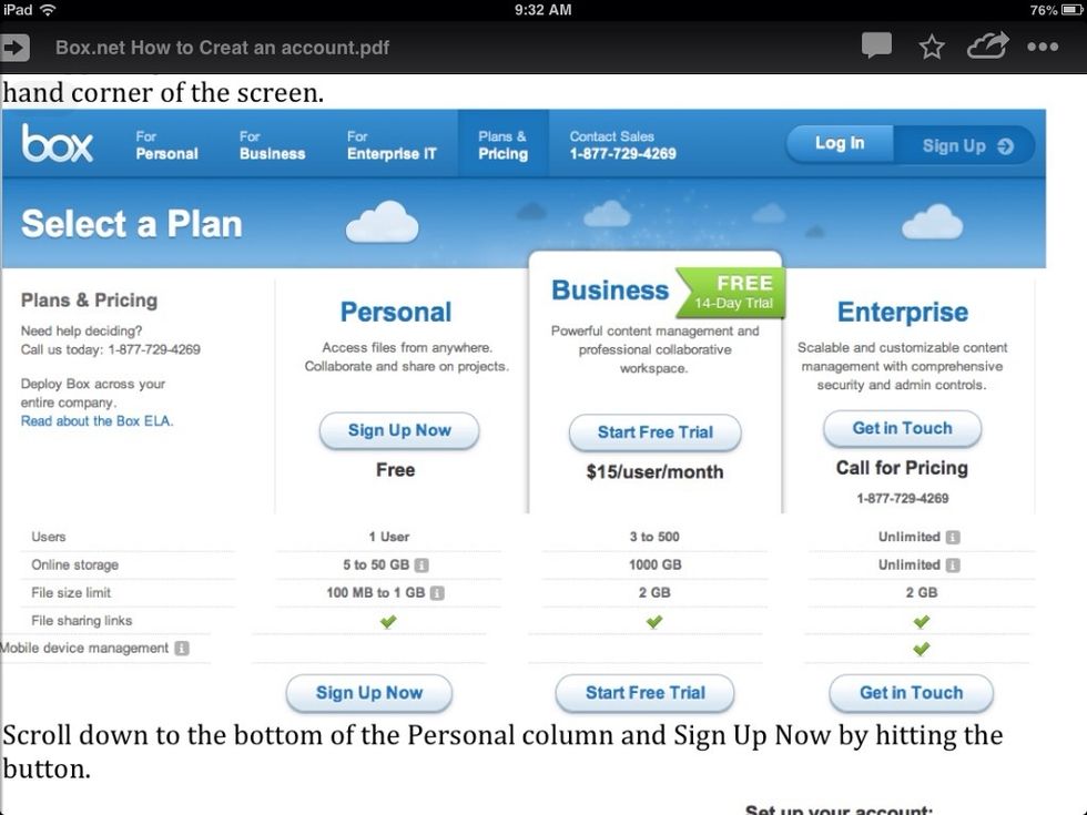 In the personal column, scroll to the bottom and sign up for free. (5 gig)