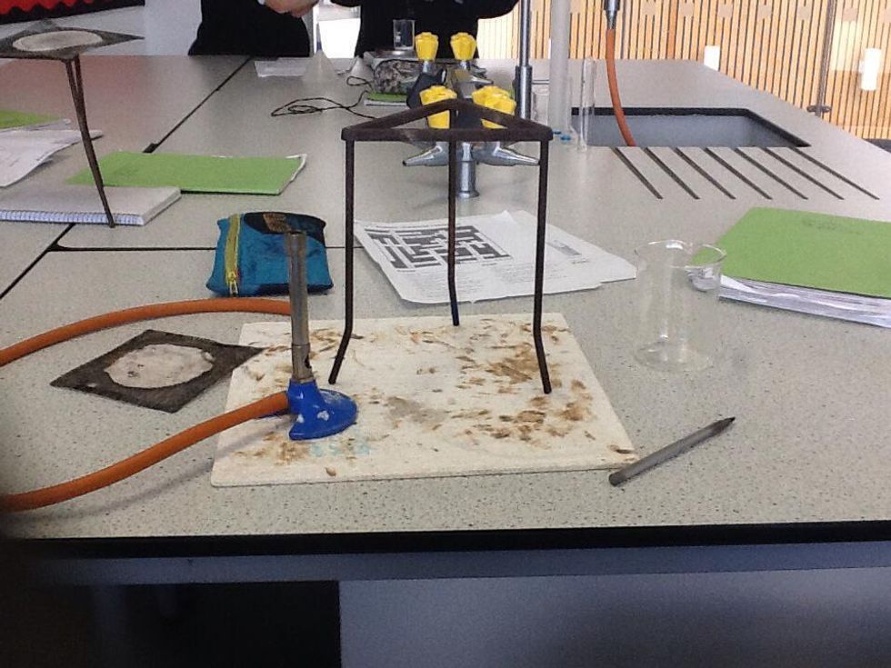 Then you put the wire mesh or a metal board onto of the stand and then place your beaker on top of the wire mesh.