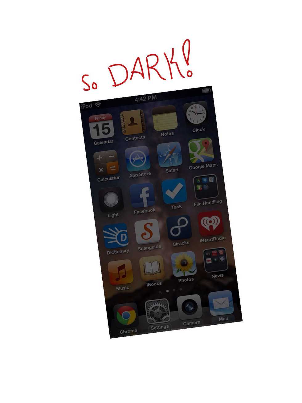 I'm honestly not sure if anyone has found this little hack out! This will turn the brightness of your iPod touch 5 down all the way... WithOUT going to Settings!