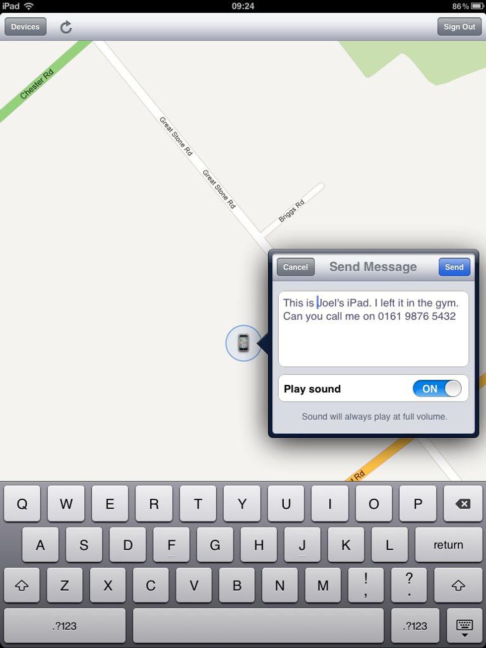 Tapping Play Sound or Send Message, allows you to write a personalised message and also plays a sound on the missing device! Well handy!