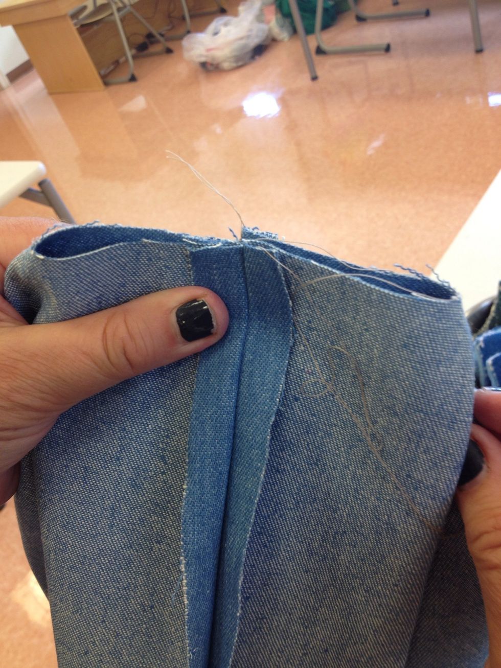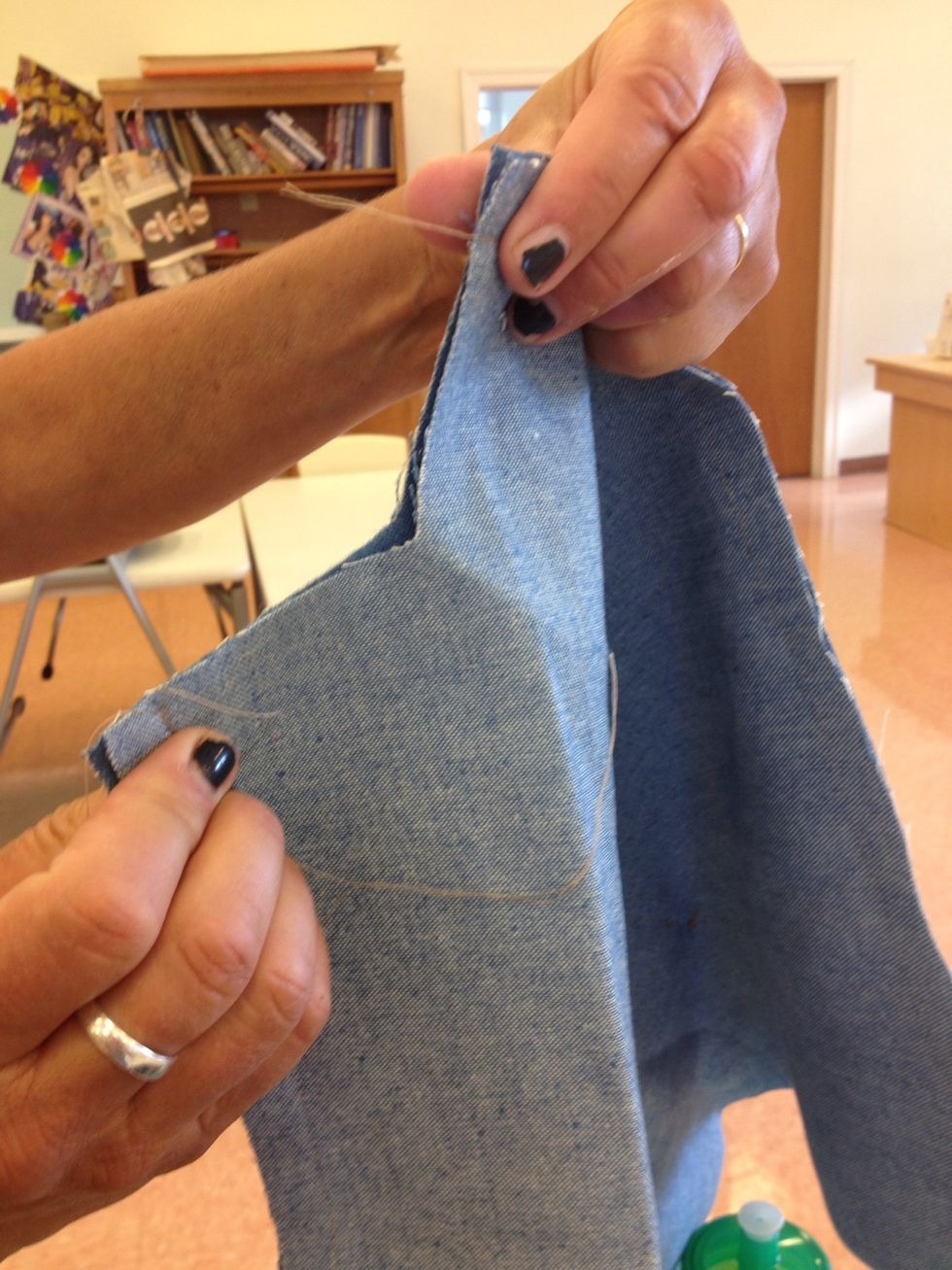 Sew pocket leaving small center piece open. Trim sides with pinking shears, trim corners to reduce bulk, and turn right side out.