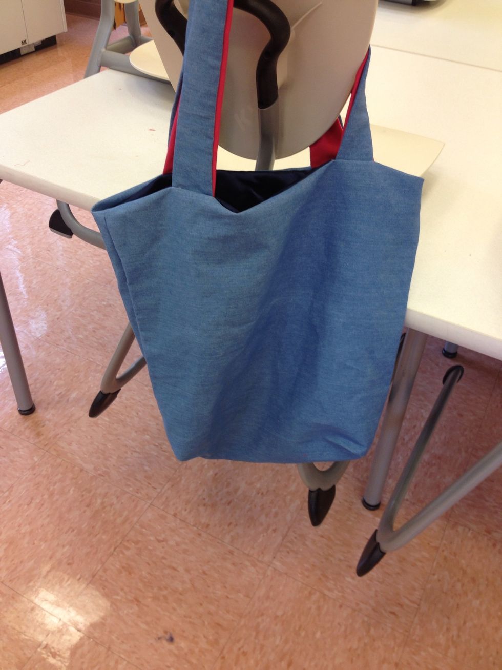 Pull bag right side out by straps through bottom hole.