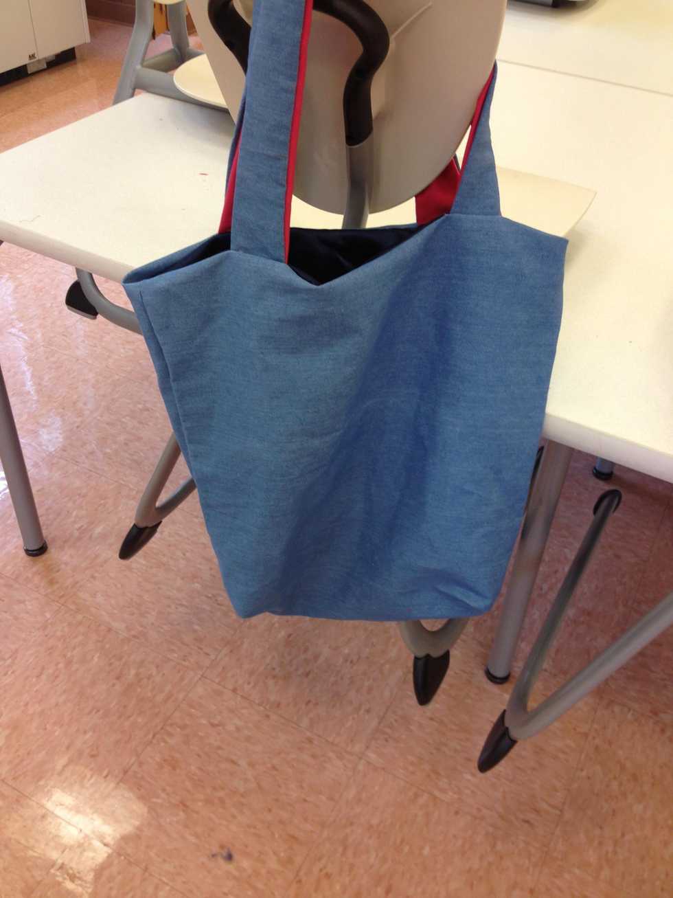 Cut fabric 2-26"x 6" for straps. 2-20" x 20" for outer fabric. 2-20" x 20" for loner. 2-20" x 20" for interfacing onto outer fabric. 2- 8" x 8" for pocket