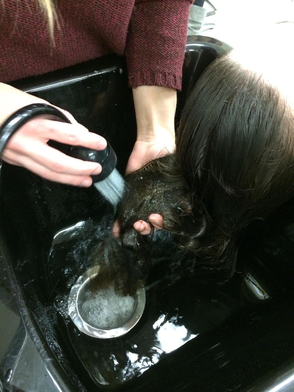 Rinse the hair ensuring all soap suds are rinsed out. Make sure to cup the clients face and ears to prevent a face wash.