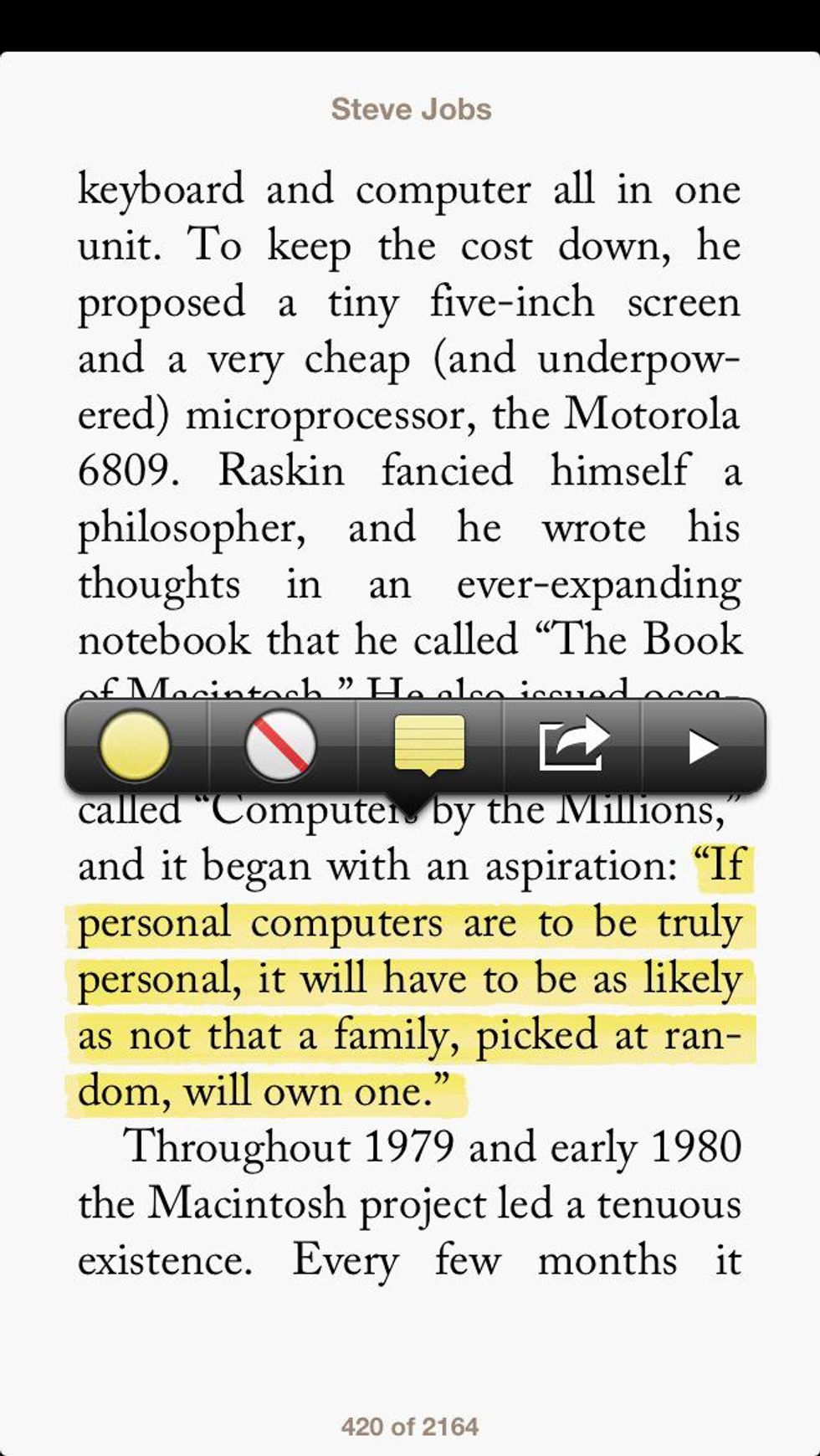 Find the page in your book with the quote, I'm using a page from Steve Job's Biography.