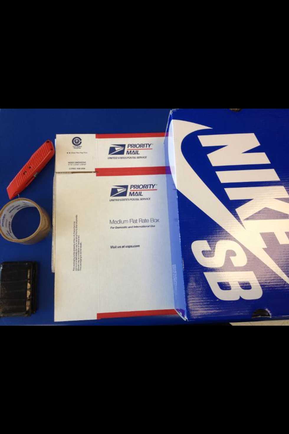 Simple guide to double boxing sneakers getting sent USPS priority. You need a box cutter, roll of tape, and rectangle pre printed USPS priority or medium flat box.